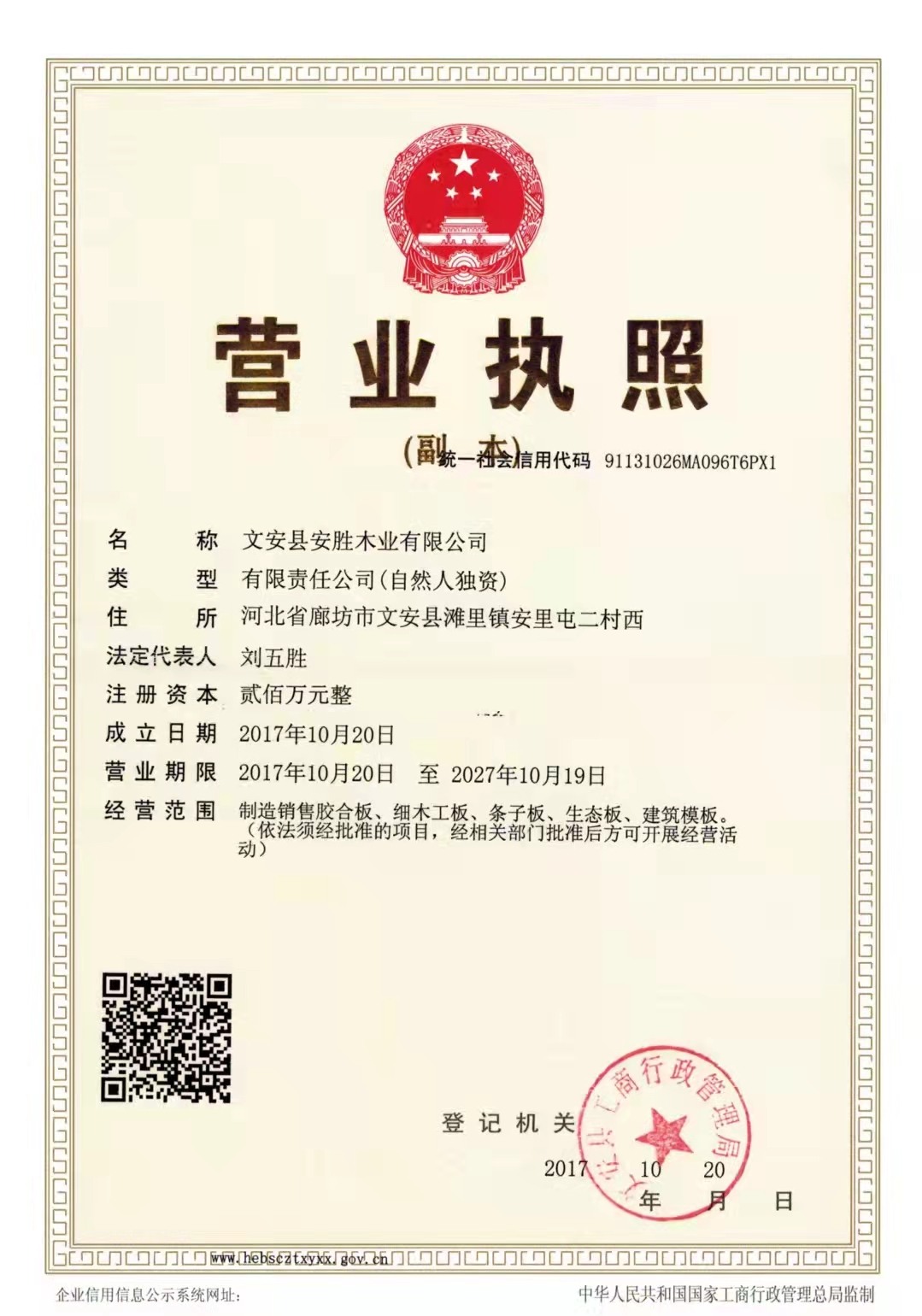 文安縣安勝木業(yè)有限公司位于膠合板基地文安縣安里屯。地處京津保三角地帶交通便利。經(jīng)過十幾年的奮斗,我們集板材研發(fā)、生產(chǎn)、銷售于一體,其中注冊商標(biāo)“皇家木坊”“吉爾加”“安勝至尊”。產(chǎn)品遠(yuǎn)銷全國各地。